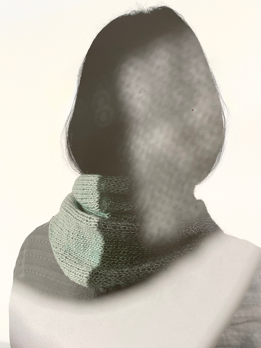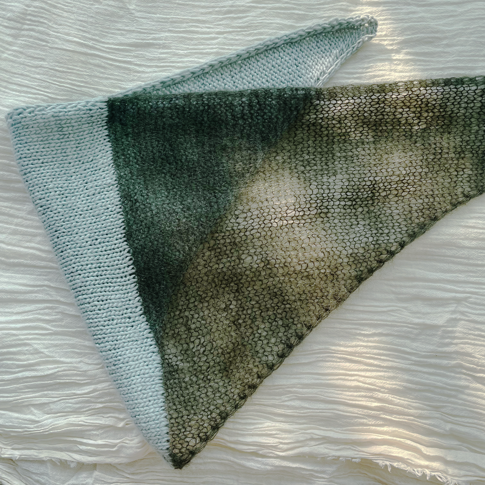 두 가지 색상과 소재가 어우러진 삼각형 모양의 스카프/반다나입니다.