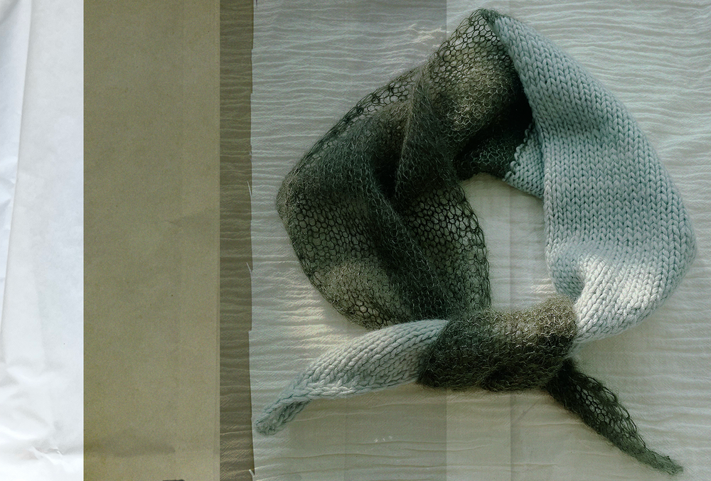 여기에 사용된 하늘색 원사는 이 스카프에 사용된 양이 마지막입니다.